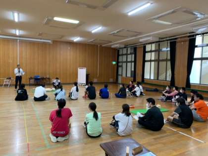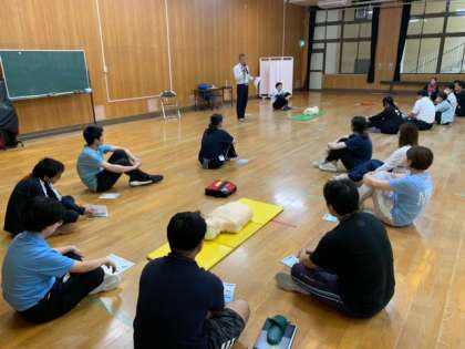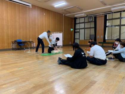 模型を使って、胸骨圧迫やAEDの使い方を学びました。