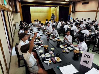 朝のつどい後、朝食をいただきました。