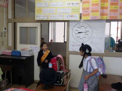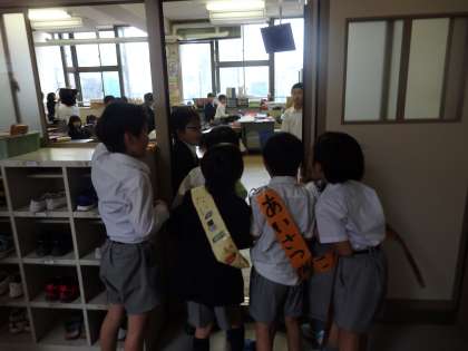 また、来てくれた低学年の「あいさつ隊」に優しく接し、一緒にあいさつをする姿も見られます♪