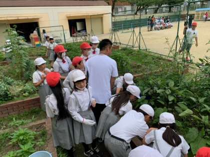 飼育園芸委員会さんは、学習園の草抜きをがんばっていました。