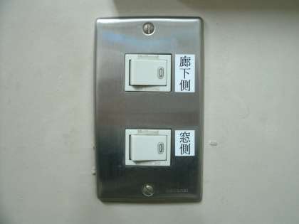 教室照明スイッチに点灯エリアを表示するラベルを貼ります。