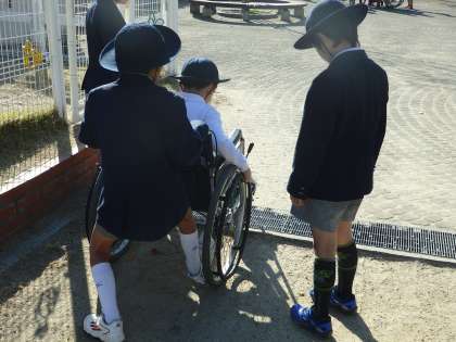 「段差があるよ!」「ステッピングバーをふむんだよ。」「重たいんだなー。」