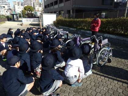 車いすに乗ったり、車いすを押したりと、とても貴重な体験をすることができました。ふれあいセンターももの皆さん、ありがとうございました。
