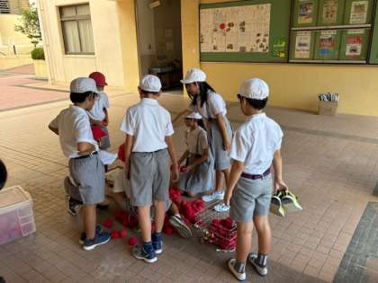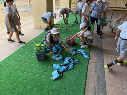 運動委員会さんは、体育学習発表会に向けて、用具の整理やゼッケンの整頓を行いました。