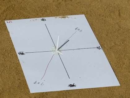 方位磁針や遮光板、タブレットを使って結果を分かりやすく記録しました。
