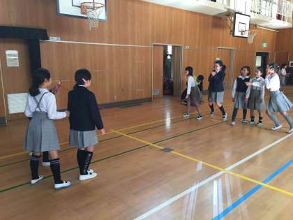 耐寒活動が始まり、子どもたちはなわとびに取り組んでいます。運動場が狭いため講堂も開放して練習しています。