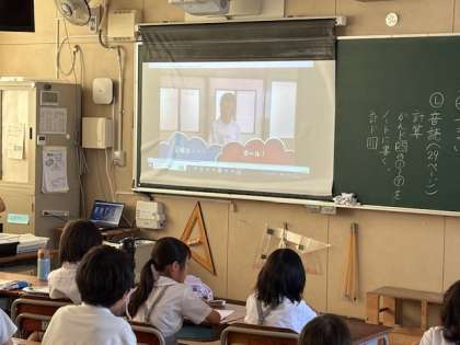 今回の児童集会は、「フライングクイズ」でした。集会委員さんが投げた物を隙間から見て何かを当てるクイズです。
