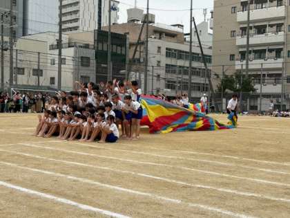 6年生の「165カーニバル」では、バルーン、組体操、フラッグの三つの演目を、見事に融合させ、最高学年らしい素晴らしい演技を披露しました。