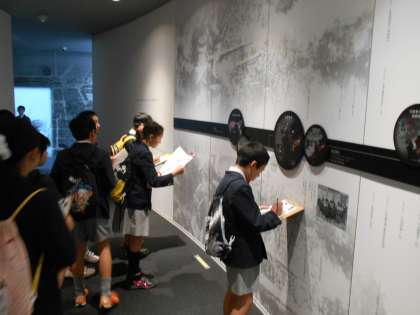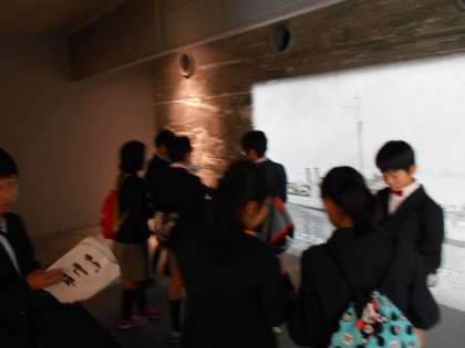 中央小学校から歩いて、ピース大阪へ行ってきました。30分間、歩いて行きましたが、寒さに負けずさすが6年生でした。