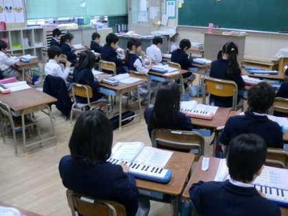 鍵盤ハーモニカの音色が学校全体に響いています。