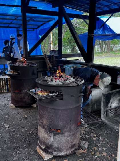 ピザを生地から作り、自分たちで好きなトッピングをし、ピザ窯で焼いてもらいました。