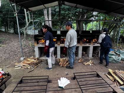 自分たちで割った薪を使って、ピザ作りをしました。