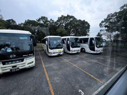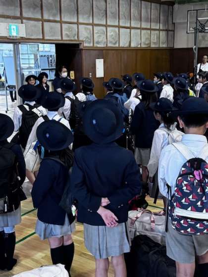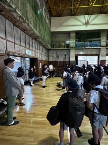 5年生はこの後バスに乗り、学校へ向けて出発します。
