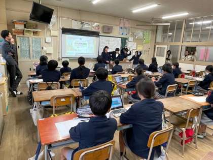 自分たちで調べたことをスライドにまとめ分かりやすくみんなに伝えていました。
