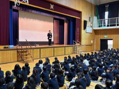 終業式では校長先生のお話を聞いたり、表彰をしたりしました。