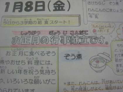 3学期初日の給食は「お正月の行事献立」(1/8の給食)
