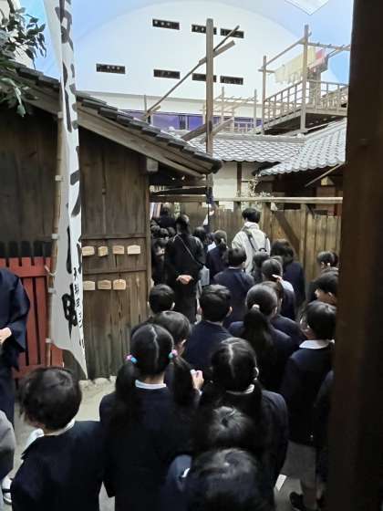 施設の中にある道具や建物、展示物に触れ、昔の人々の暮らしぶりを学習しました。