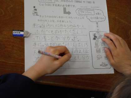 1日の摂取量をめざした食品の取り方も学び、カルシウムをたくさんとって骨や歯をじょうぶにしようと思った時間となりました。
