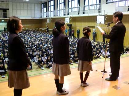 で優秀な成績をおさめた子どもたちの表彰がありました。