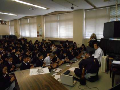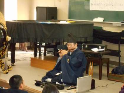 昨日、高津宮の宮司さんと雅楽演奏者の山下さんによる雅楽の出前授業が行われました。