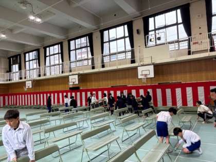 5年生が卒業生のために、式場の準備をしたり、教室をきれいにしたりしました。