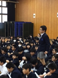 本日、出前授業で6年生が税金のことについて学びました。税金がある時の暮らしと、ない時の暮らしの様子をアニメで見ました。その後に、わかったことについて発表をしました。