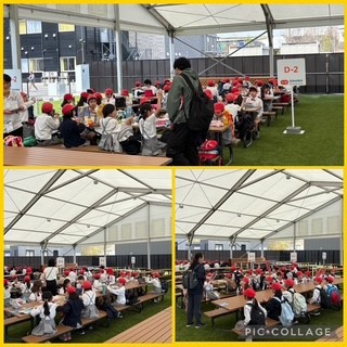 今日は日差しが強く気温も高いですが、大屋根リングやテントの下などは、日陰で風も吹いているので比較的涼しいようです。