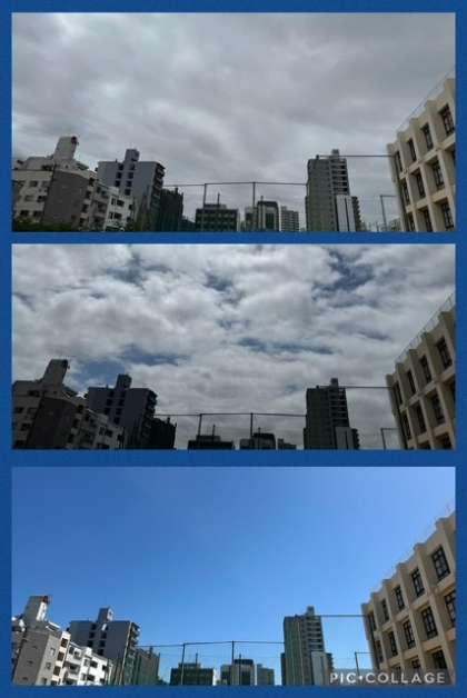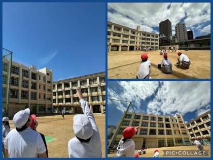一面おおわれた雲から快晴へと姿を変えていった今日の空。5年生は、それぞれの授業時間で動き・形・色など雲の変化を観察しました。