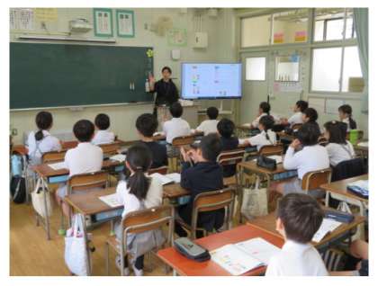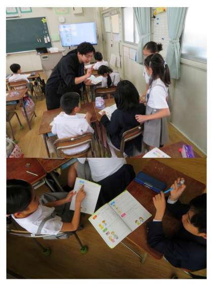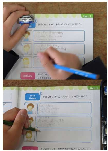 英語の音声を聞きとり、登場人物の名前と好きなこと、きらいなことを日本語や英語で書き込んでいました。みんな、がんばって自分の思いを伝えようと頑張っていました。