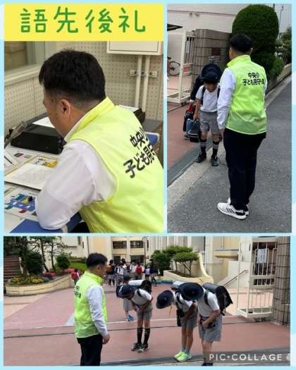 昨日の全校朝会で、校長先生から、「語先後礼(立ち止まり、相手の顔を見てあいさつをしてから礼をする)」のお話がありました。