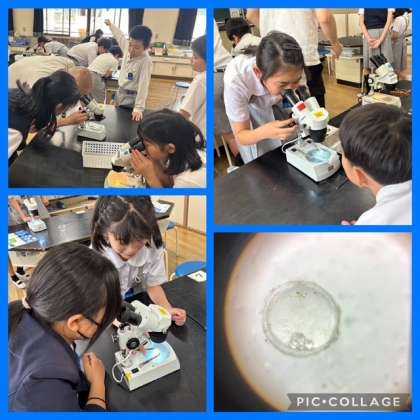 昨日と今日見つけたメダカのたまごを、双眼実体顕微鏡で観察しました。受精してからの時間で、たまごの姿は少しずつ変化していくことがわかりました。