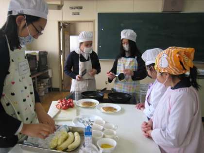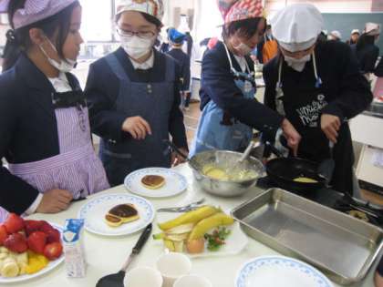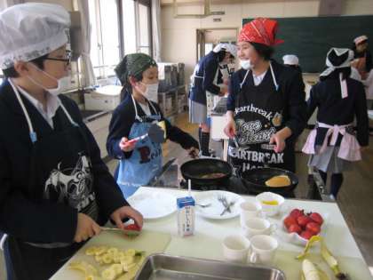 今年度最後の活動でした。ホットケーキを作りました。いちごとバナナ、桃、生クリーム、チョコソースをお好みでトッピングしました。さすが1年間活動した子どもたちのチームワークは、とても良いものでした。最後に6年生が、一言ずつ感想を言い、「もっと料理が好きになりました。」「家でも料理をするようになりました。」「残りの学校生活を楽しんでください。」などと4、5年生へのメッセージもありました。最後のクラブも和気あいあいと活動することができました。