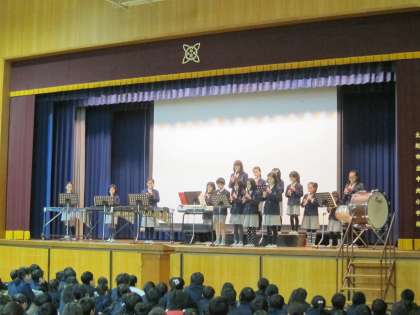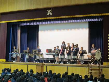 全校児童の前で演奏するのは初めて。でも、1年間の練習の成果を出し切り、堂々と演奏できました。