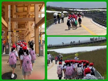 大屋根リングの高さやエスカレーターの長さに驚いたり喜んだり。