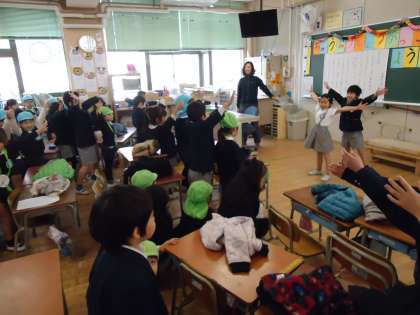 ゲームでジャンボじゃんけんをしたり、絵本の読み聞かせやランドセル体験をしたりしました。