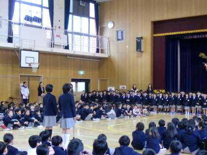 在校生からは代表として6年生の2名が歓迎のことばと発表しました。
