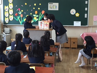 火曜日、木曜日の読書タイムに6年生のお兄さん、お姉さんが来てくれて絵本を読んでくれます。