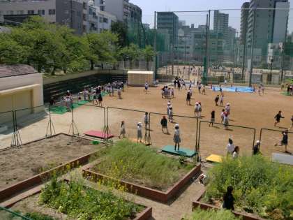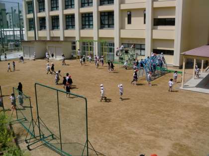 天気もよく、子どもたちは新しい遊具やボールを使って遊んでいます。