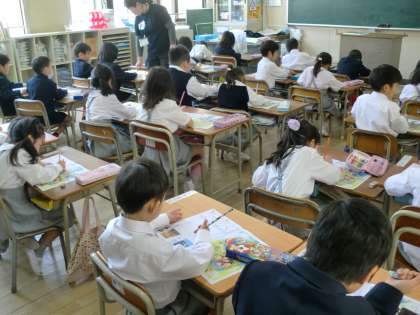 手本をよく見ながらゆっくり書いています。