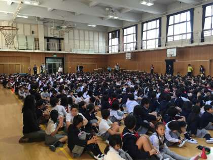 中央小学校では、たてわり班活動を実施しています。今日は新年度初めてのたてわり班活動を行いました。新しい班の友だちや活動場所、並び方などを確認しました。