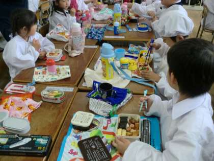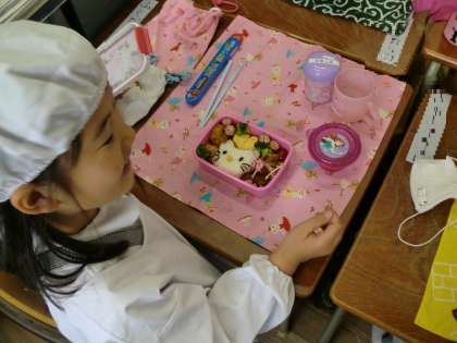 学校でお弁当を食べることが嬉しいようで、大盛り上がりでした。