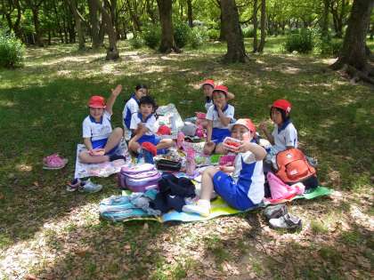 青空のもと、みんなで食べるお弁当は格別でした。