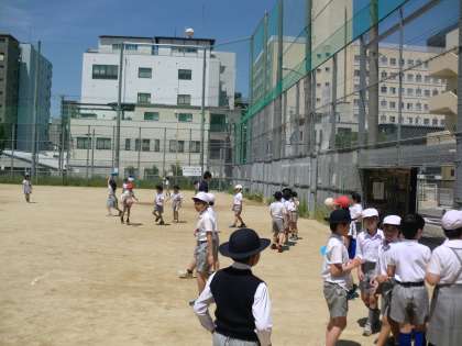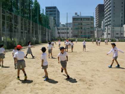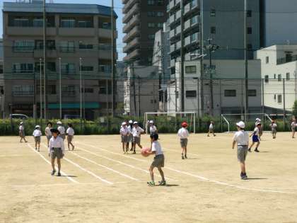 瓦屋町グランドでは、ボールを使って遊ぶことができます。