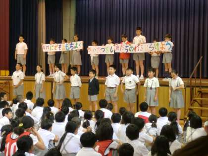 また、児童会からは来週から始まるあいさつ週間について連絡がありました。