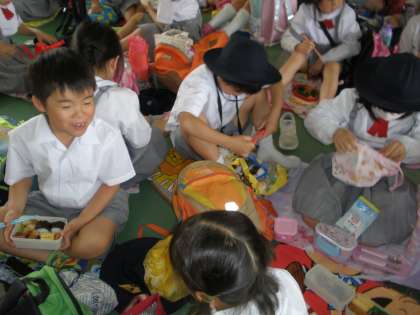 みんなで食べるお弁当は格別です。しっかりお弁当を食べて、おやつも楽しみました。