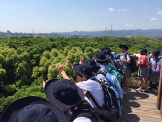 帰り道は、ソラードを通って、自然を観察しながら帰りました。展望台では、見晴らしのよさに、思わず「すご〜い。」「めっちゃきれい。」と歓声が上がっていました。