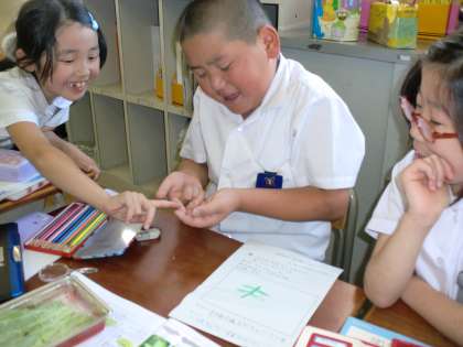 今日は幼虫を触りました。みんな身を乗り出すほど意欲的に取り組んでいました。