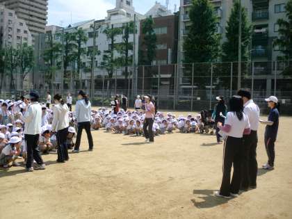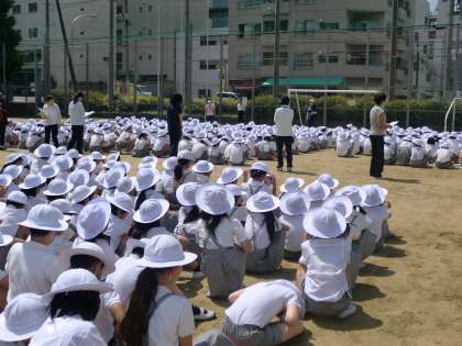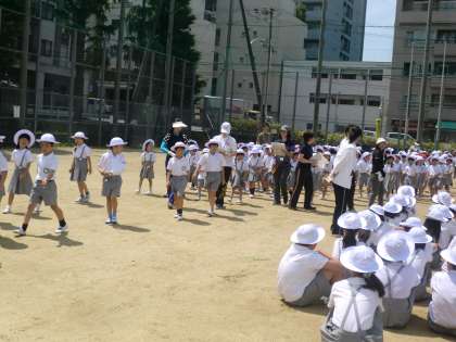 全員の無事が確認できたので、次は広域避難の際の並び方を練習しました。