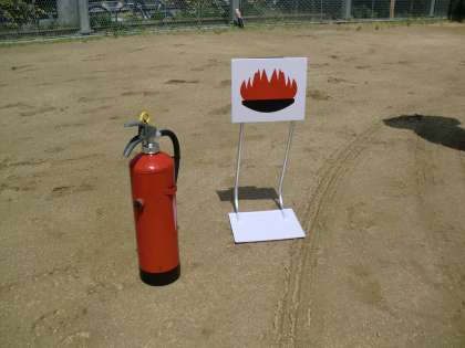その後、水消火器を使って消火器の使い方を教わりました。