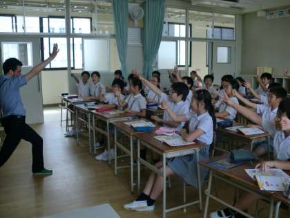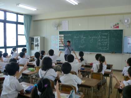 今日は英語のじゃんけんを先生と一緒に行いました。